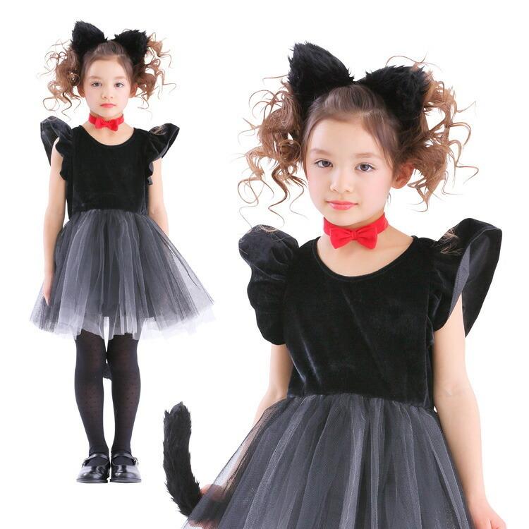 楽天市場 猫 ネコ コスプレ 子供用 女の子用 ミニドレス コスチューム ハロウィン コスプレ コスチューム 衣装 アカムス楽天市場店